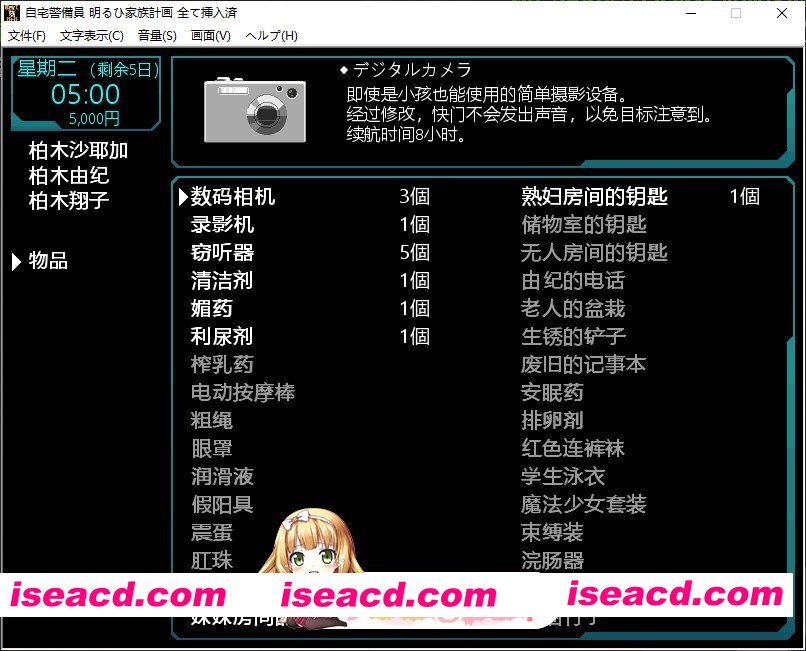 这是一款为了维护宅邸的安宁,而在厨房、更衣室、卫生间等地方安装监控设备(数码相机、摄像机、窃听器),