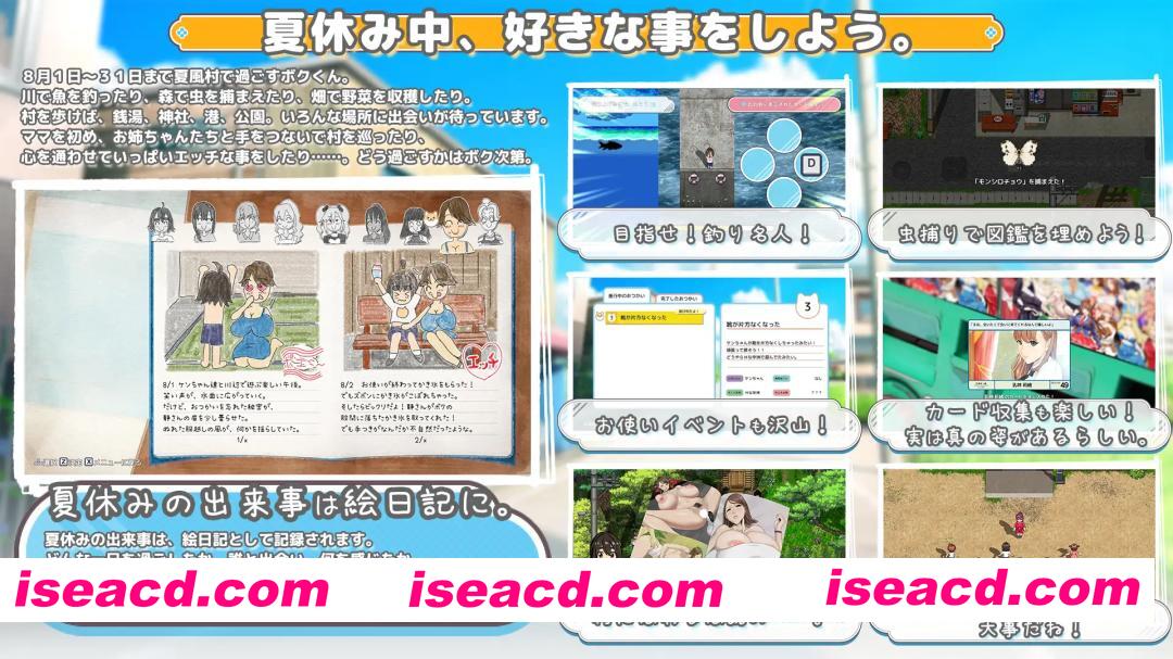 游戏简介: 由于妹妹即将出生,我决定暑假期间前往母亲娘家亲戚“梦咲家”居住的夏风村暂住。 夏风村是个极为偏远的小乡村—— 眼前是连绵的田园风光,炽烈的阳光倾泻而下,蝉鸣与暮蝉的虫鸣交织成夏日的交响。 而更重要的是……这里还有一群对我格外热情、既俏皮又充满魅力的姐姐们。 在这为期一个月的暑假里,我将通过“手牵着手”感受到怎样怦然心动的夏日邂逅与悸动呢? 这一切……当然都取决于你的选择。 PS:修了一点BUG