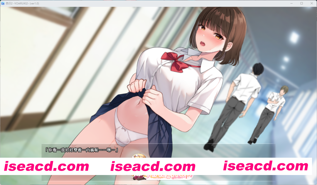 她本想忍耐到周末的夜晚,却在上学后无法抑制对露出行为的冲动。于是,在课程开始前,她走到走廊上,在挤满学生的校舍内撩起裙子,露出内裤走了起来。