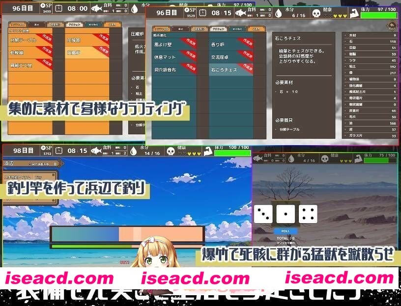 ・在沙滩、密林等可探索范围内,首先进行探索、获取食物和水源。
